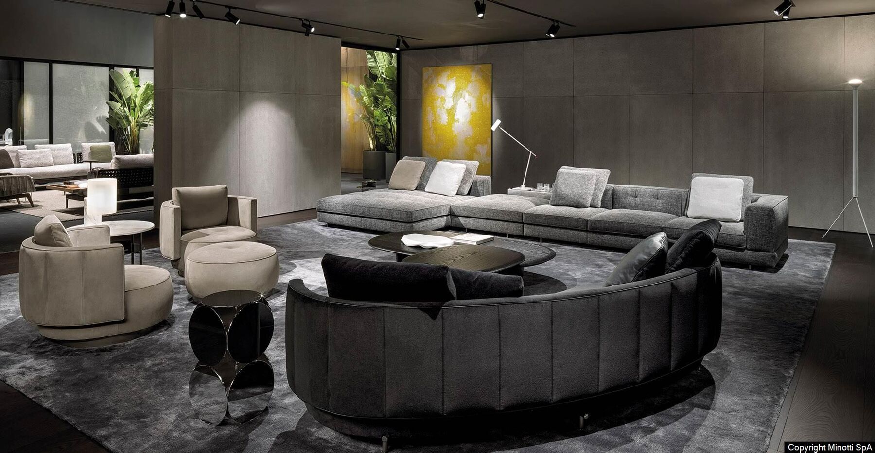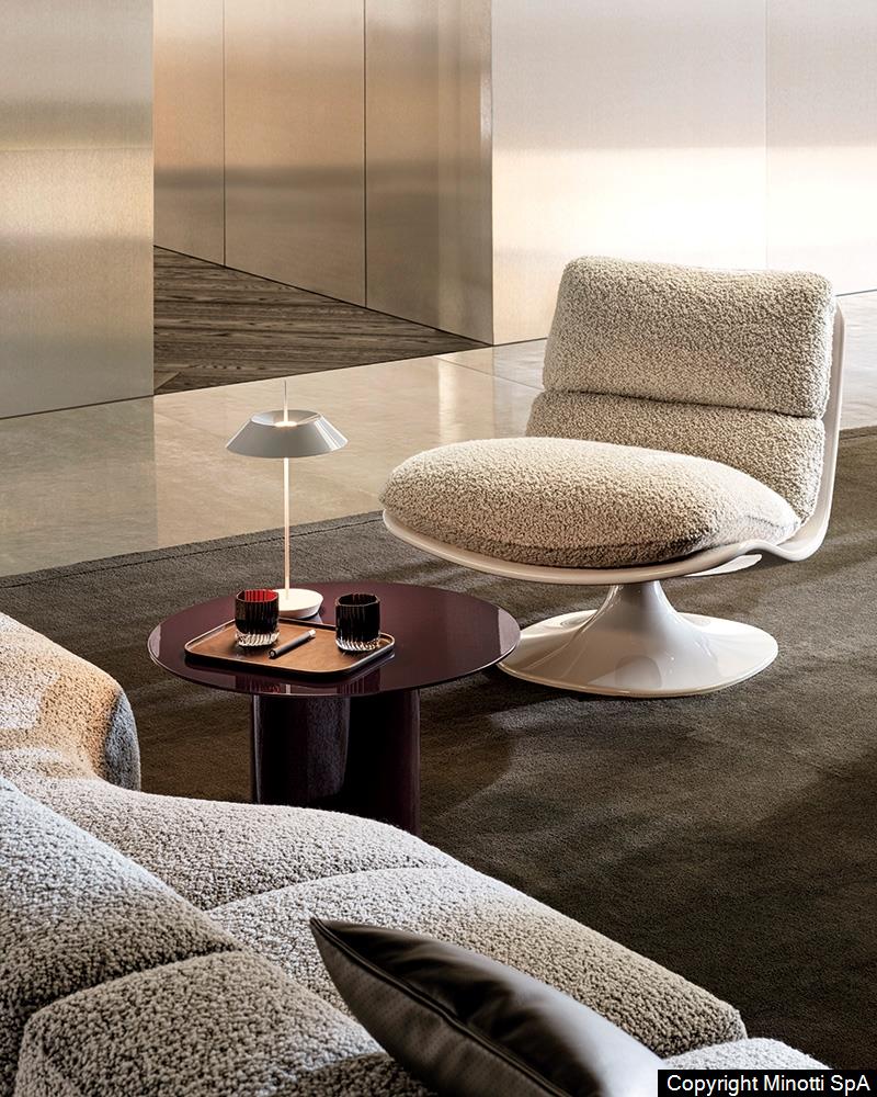 Minotti ist ein italienisches Möbelunternehmen, das 1948 gegründet wurde und für seine hochwertigen, modernen Designs bekannt ist. Die Möbelstücke sind oft minimalistisch und doch luxuriös, mit klaren Linien und einer subtilen Farbpalette. Dabei wird grosser Wert auf Komfort und Funktionalität gelegt, sodass die Möbel nicht nur ästhetisch ansprechend, sondern auch äusserst komfortabel sind. Minotti arbeitet mit international renommierten Desigern wie Rodolfo Dordoni, Patricia Urquiola, Rodrigo Torres und Nendo zusammen und bietet eine breite Palette an Möbeln und Accessoires, die sowohl in privaten als auch in öffentlichen Räumen verwendet werden.